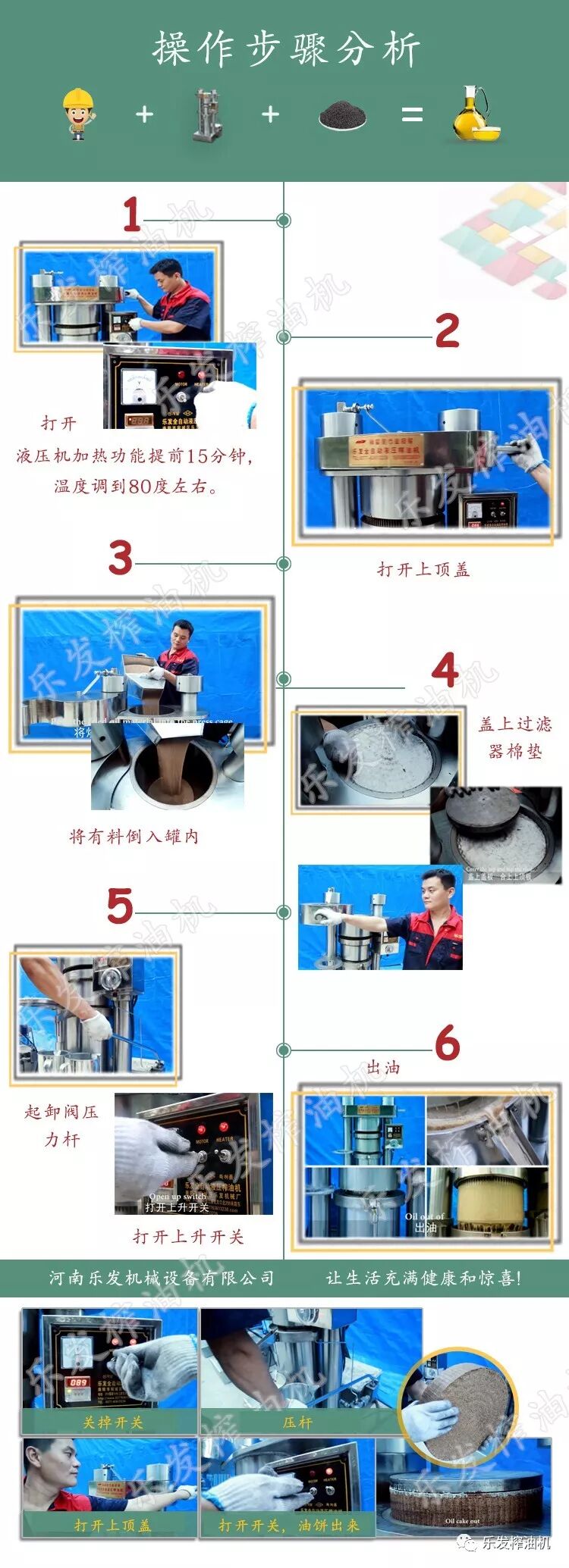 開榨油坊運(yùn)作超級簡單:不論您有無相關(guān)技術(shù)和經(jīng)驗都可以。樂發(fā)榨油機(jī),使用家用220V電,自己一個人就可以操作,忙過不來或者想輕松的話雇一個人也能操作。